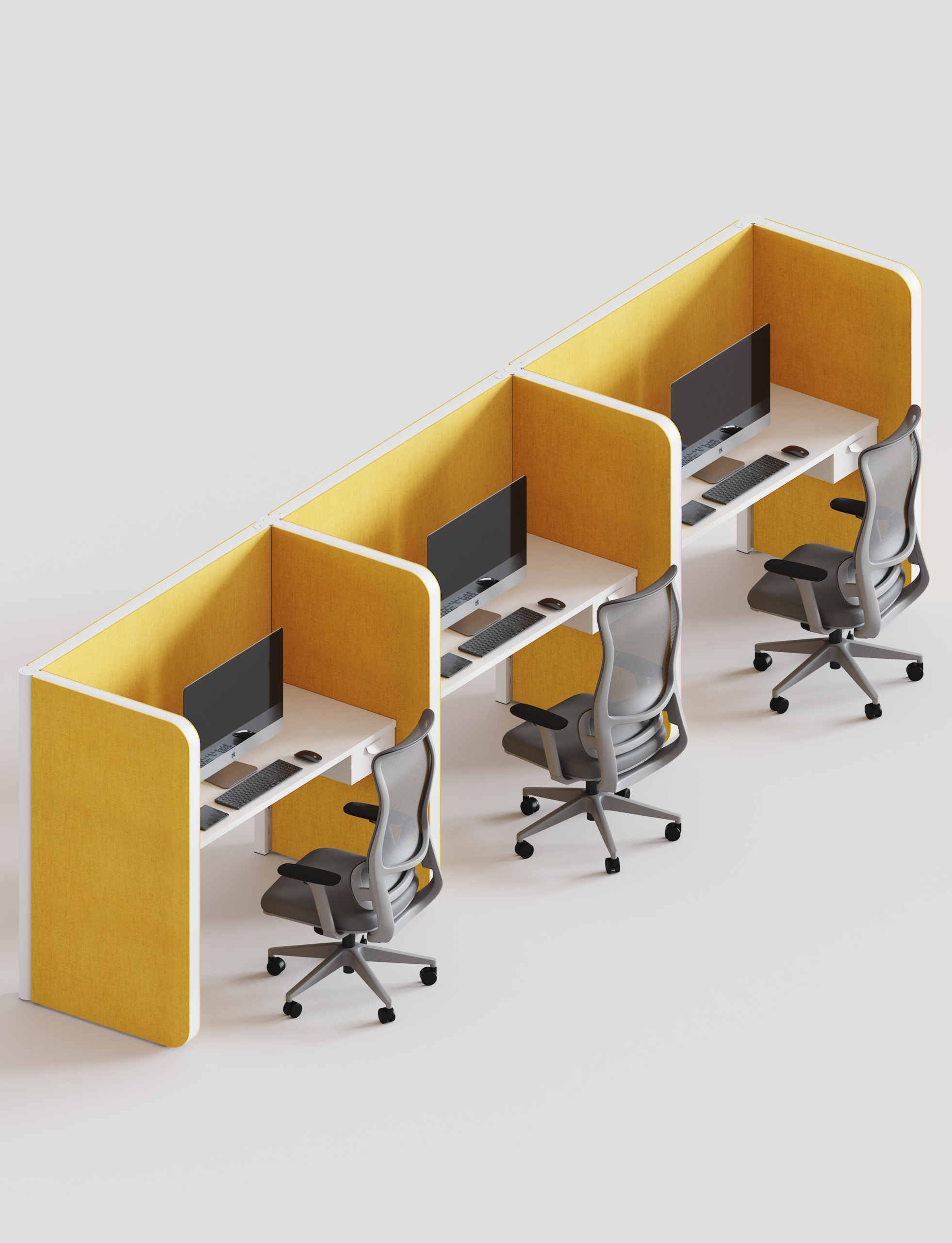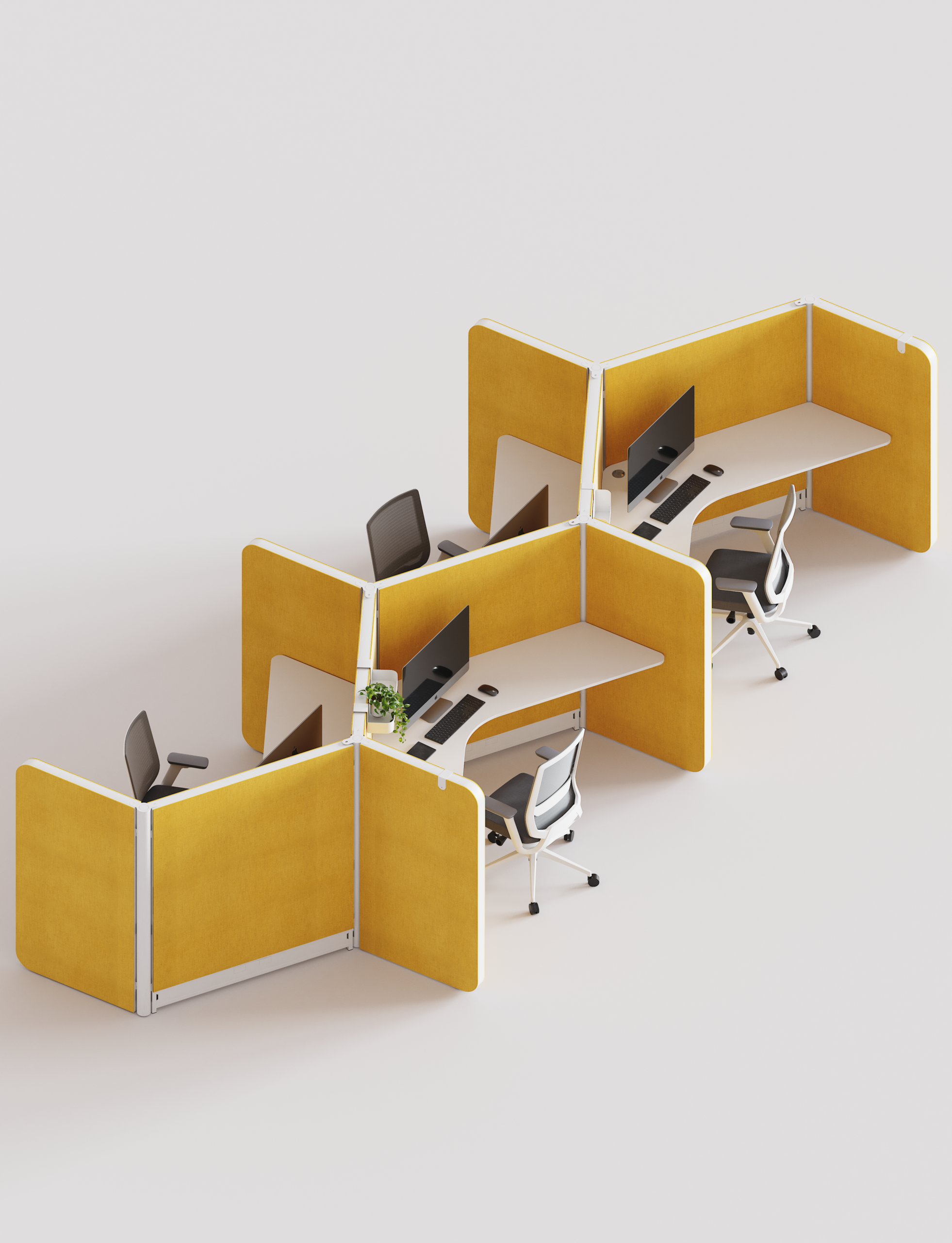 Acoustics in the Setto system are one of its fundamental pillars, designed to optimize comfort and productivity in workspaces. Its structure allows for efficient sound absorption, reducing echoes, ambient noise, and improving concentration.
