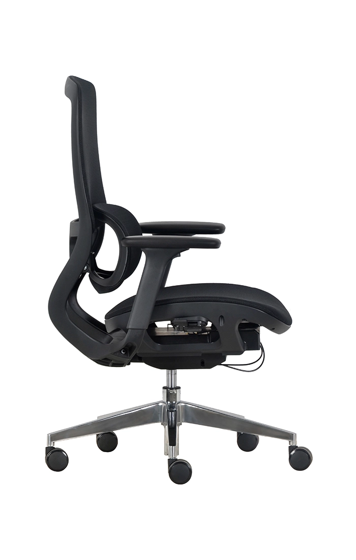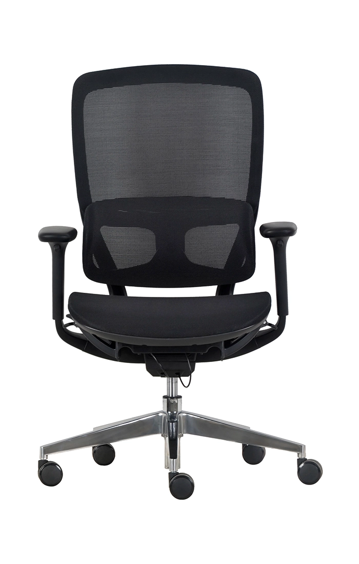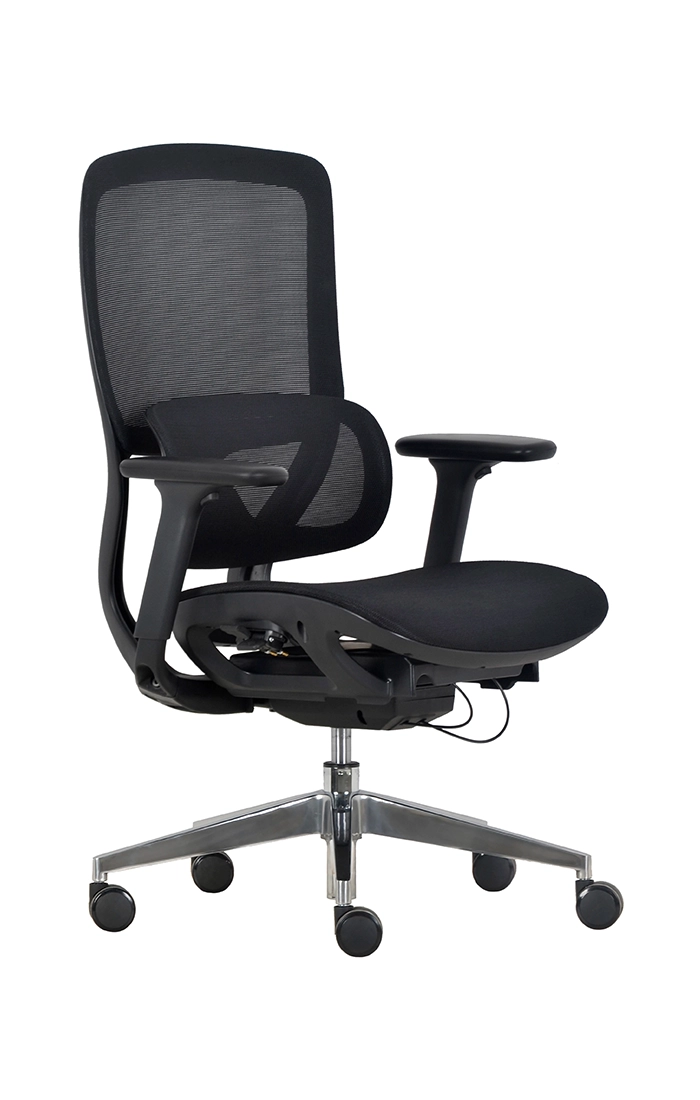 It features 3D armrests with a Soft Pad, adjustable in multiple directions to provide precise support for arms and shoulders. Its independent front lumbar support with height adjustment adapts to the user and maintains a healthy posture throughout the day. Its certifications EN1335 and NOM-037-STPS-2023 guarantee compliance with the highest standards of ergonomics and workplace safety.